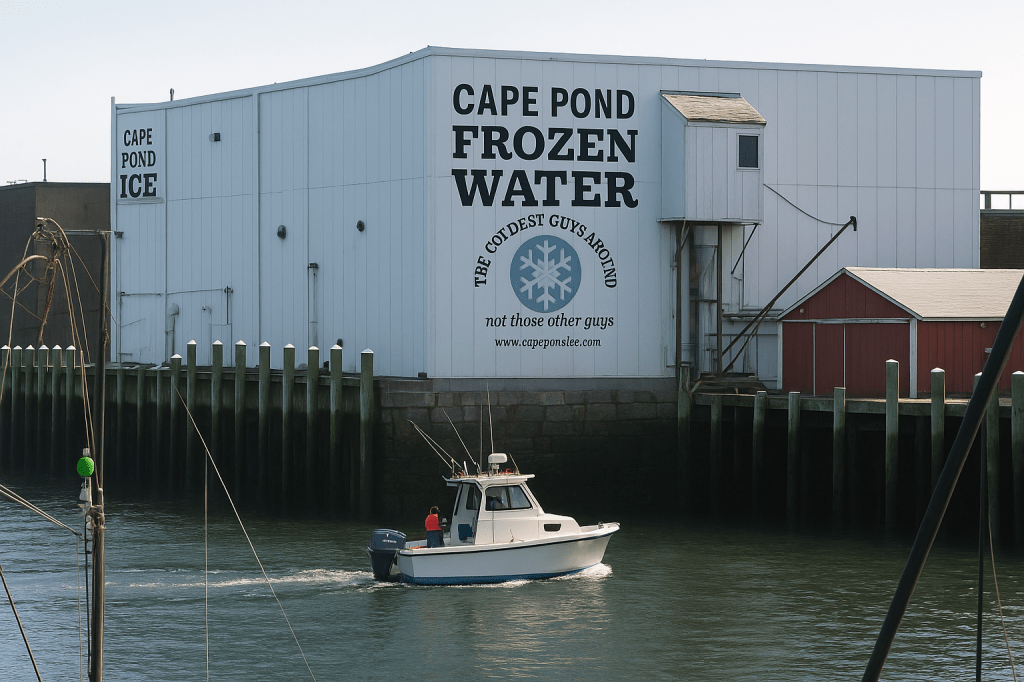 Downtown Gloucester is getting another facelift – this time on the side of the Cape Pond Ice building, which is now sporting its new name and extended tagline, “The Coolest Guys Around… Not Those Other Guys.”