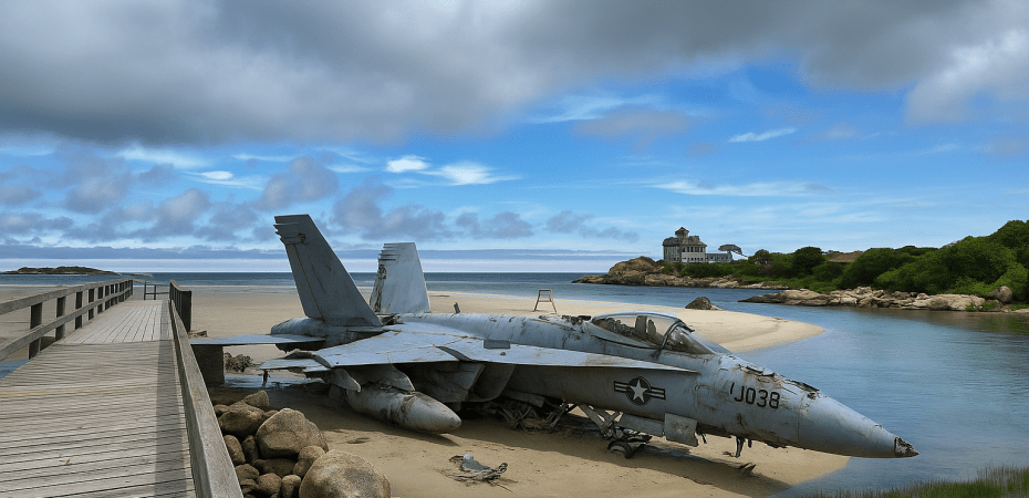 The first find, a piece of an AIM-9 Sidewinder air-to-air missile, was discovered Saturday morning on Good Harbor Beach by a dog named Baxter, who then dropped it at his owner’s feet to go chase some piping plovers. Since then, beachcombers have reported everything from fuselage fragments to cockpit panels, and even what one resident described as “a bit of a dashboard with a cup holder.”