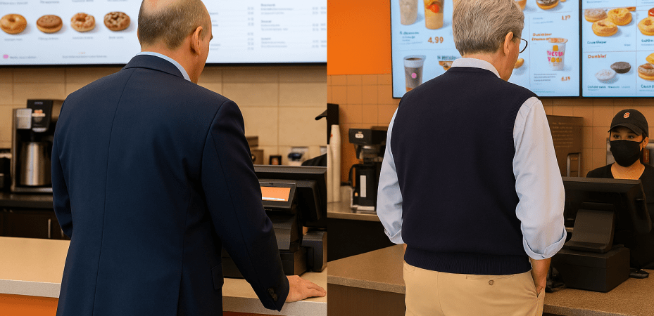 Across town at the Dunkin’ on Eastern Ave, Paul Lundberg, former City Council President and current mayoral challenger, prepares to knock doors in East Gloucester. He sits at a table sipping a medium black coffee.